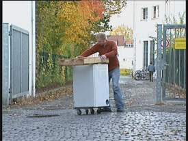 Im Zuge einer Reinigungsaktion beim Bürgerrundfunk Bremen fiel es auch an, einen Kühlschrank zu entsorgen. Nichts leichter als das, wäre da nicht eine Einfahrt, die mit Kopfsteinen gepflastert ist.
